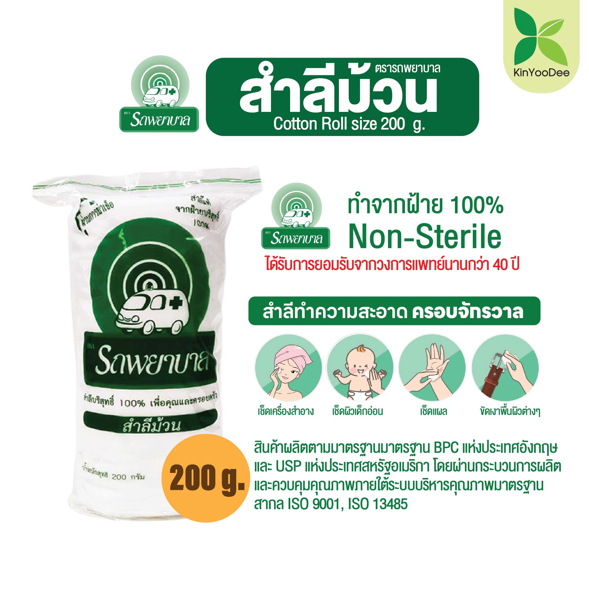 สินค้ากลุ่มรถพยาบาล สำลีแผ่น 100 กรัม 50 กรัม สำลีม้วน 150,200 กรัม และสำลีแผ่นรีดข้าง