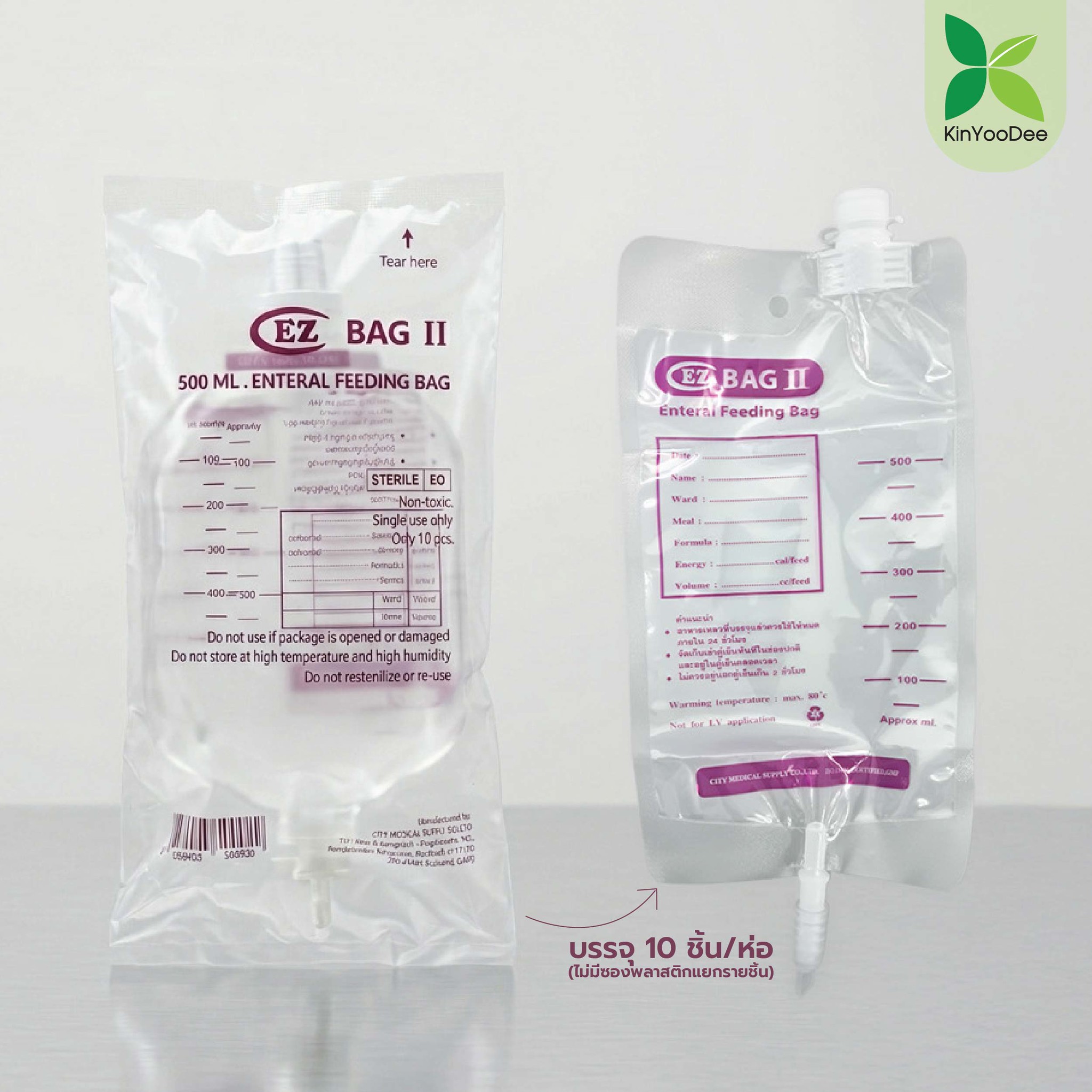 ถุงบรรจุอาหารเหลว EZ BAG สำหรับผู้ป่วย Feeding Bag 500 ml.แบบใหม่ บรรจุ 1 ห่อ 10 ชิ้น