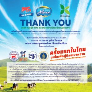 – เครื่องดื่มสูตรโปรตีนนมและโปรตีนข้าว ผสมวิตามินและแร่ธาตุ ตราไทย-เดนมาร์ค นิวทริแคล