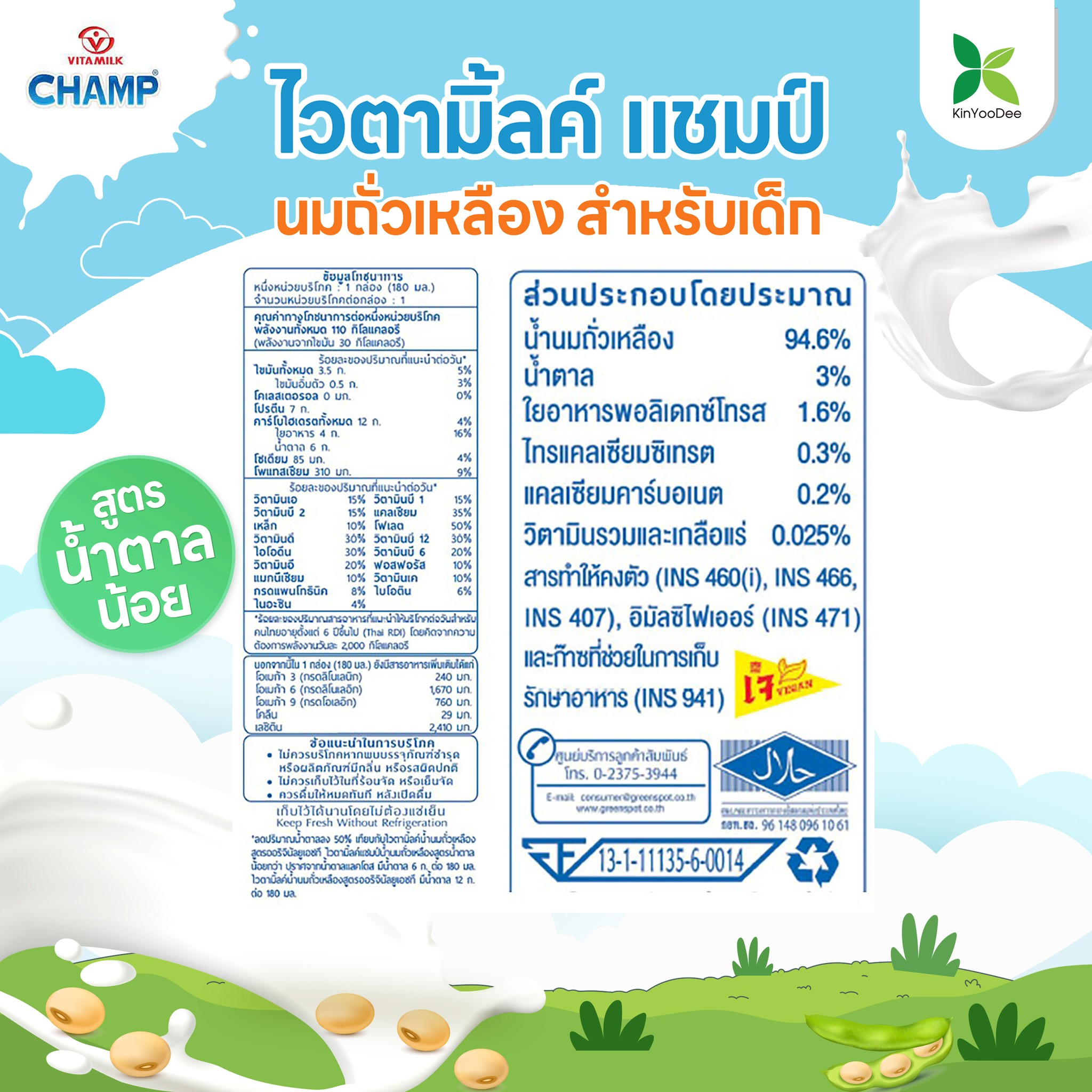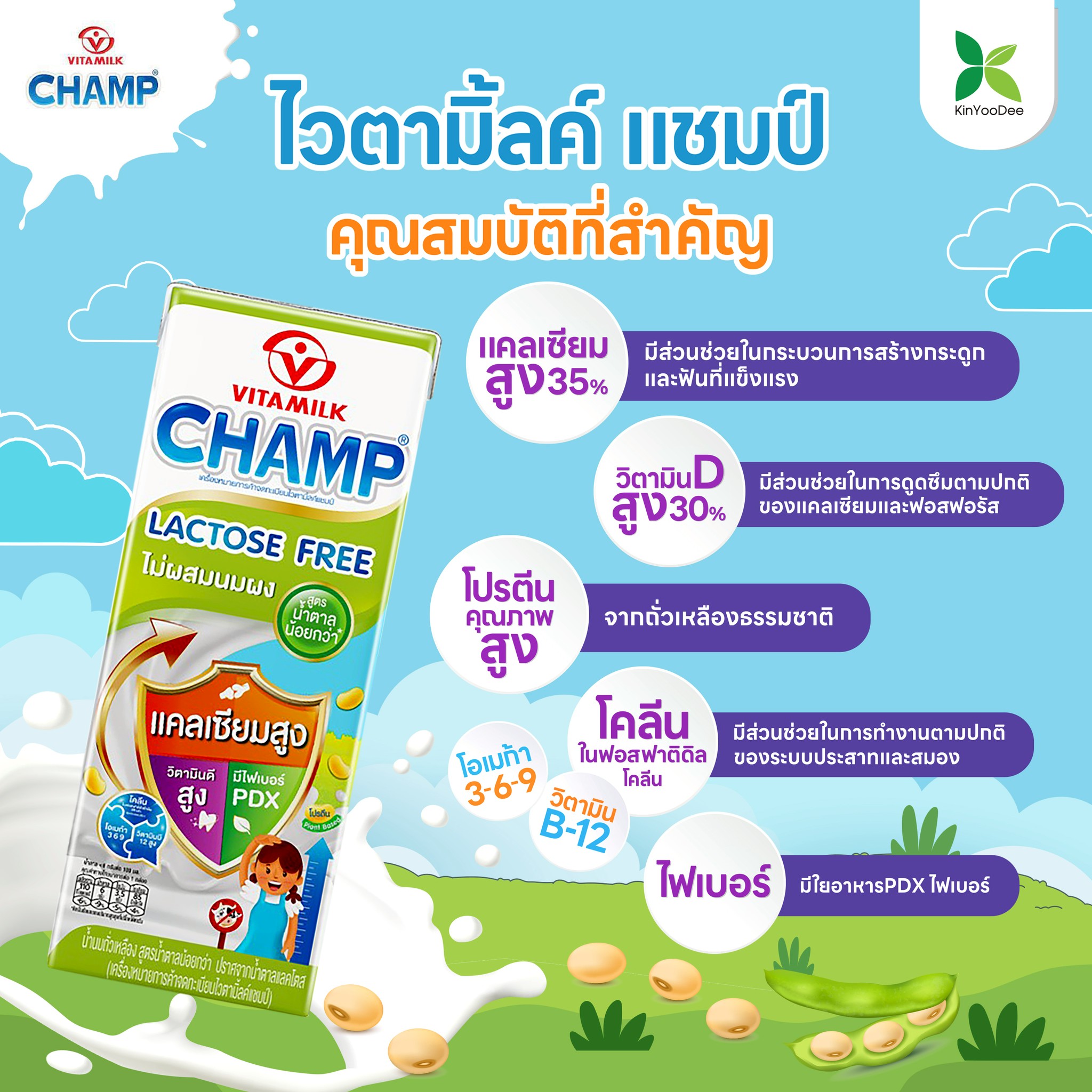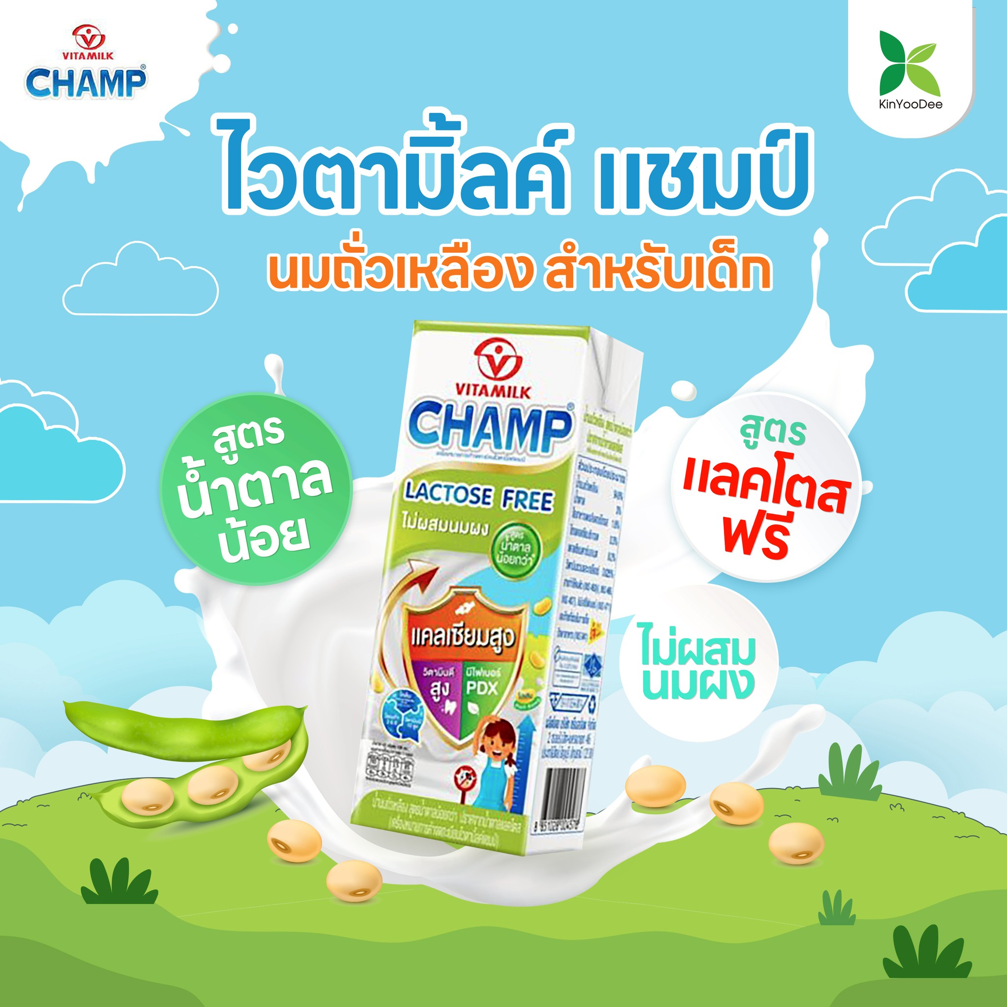 🍼Vitamilk Champ ไวตามิ้ลค์ แชมป์ สูตรหวานน้อย 180 มล. นมถั่วเหลือง สูตรแลคโตสฟรี ไม่ผสมนมผง