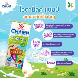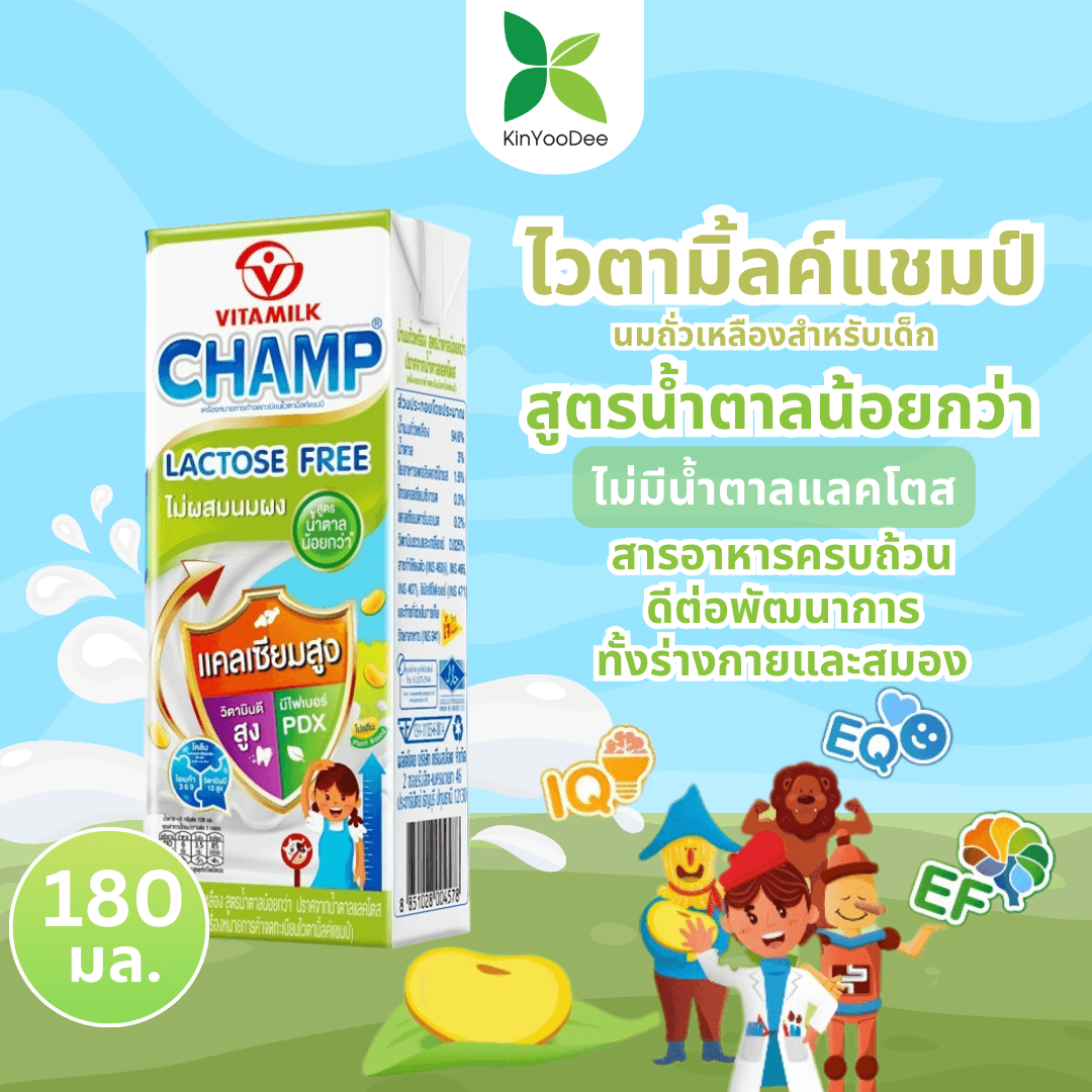Vitamik Champ ไวตามิ้ลค์ แชมป์ สูตรน้ำตาลน้อย แลคโตสฟรี 180 มล. ไม่ผสมนมผง